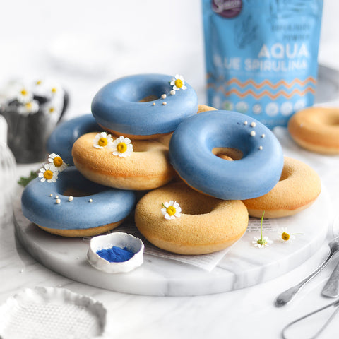 How can we say no to donuts? Especially when they're coated with blue spirulina chocolate icing!? We think these might be the most delicate looking donuts ever, achieved the heavenly blues with our Suncore Foods® Aqua Blue Spirulina Powder! Give a go at making these dazzling treats at home, one won't be enough when it comes to these donuts!