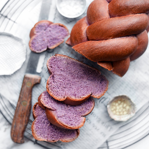 If you want to make fancy challah, here's one and only way to do — using our Suncore Foods® Ebony Carrot Powder. Crispy exterior & soft inside with beautifully braided using our powder gives this challah an elegant and vibrant purple color. This bread is perfect with butter as an appetizer or as a quick breakfast in the morning. Enjoy!