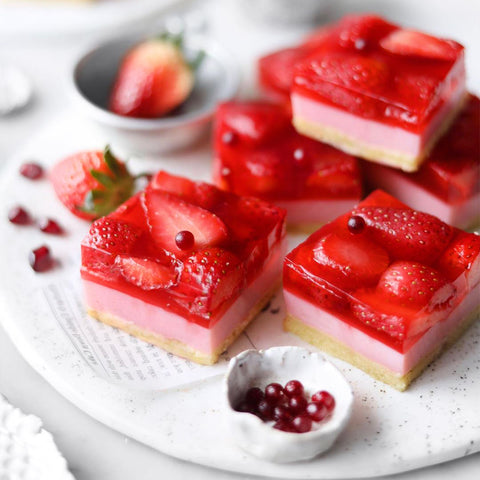 Pink Pitaya and strawberry make one great combo! These perfect squares are sure to be your daily dose of fruit and flavor. Clean cut and deliciously smooth, these slices are on another level of satisfying! With the pretty pinks from Suncore Foods® Pink Pitaya Powder and brilliant berry reds from Suncore Foods® Red Beet Powder with strawberries, this treat is hard to forget! Make these squares and see it for yourself.