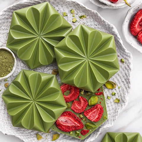 Matcha Chocolate with Roasted Pistachios & Dried Strawberry Slices