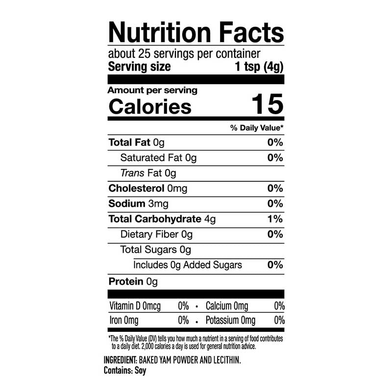 INGREDIENTS: Baked Sweet Potato Yam Powder.